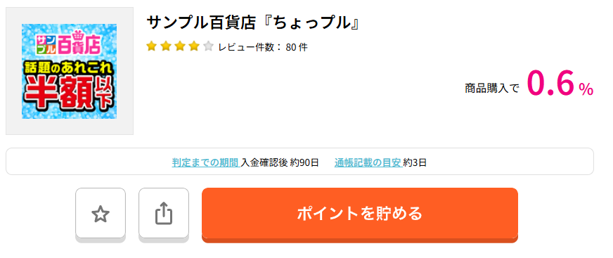 サンプル百貨店はそのままでもお得ですが、ハピタスを経由するだけでさらにお得になります。