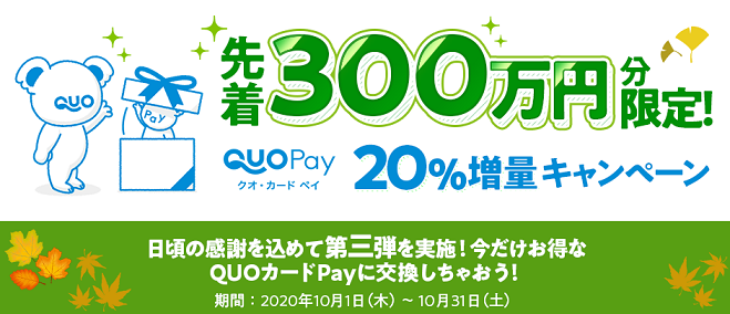 日頃の感謝を込めて第三弾を実施!QUOカードPay20%増量キャンペーン内容
