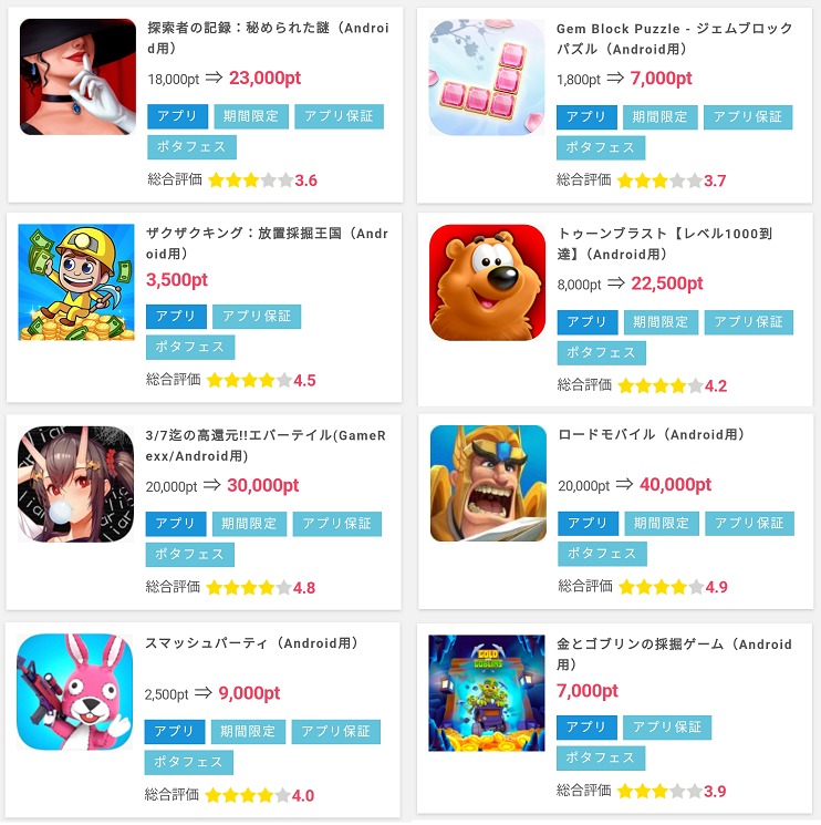 スマホをお持ちの方は、ゲームアプリでポイントを稼ぐのが良いと思います。