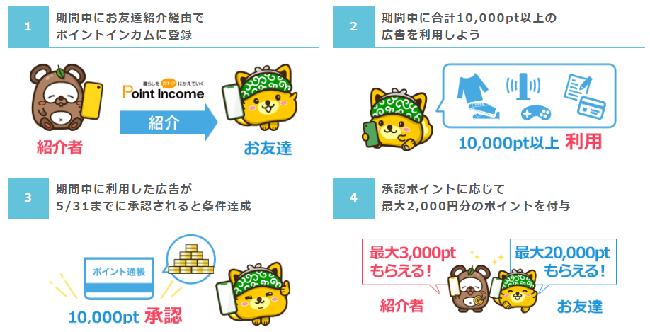 - 期間中にお友達紹介経由でポイントインカムに登録