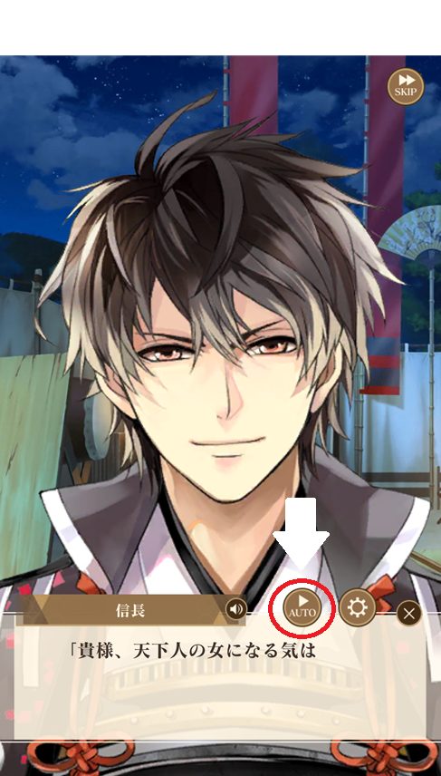 恋愛ノベル系ゲームのため、基本は「読むだけ」で進行します。読まなくてもOK!