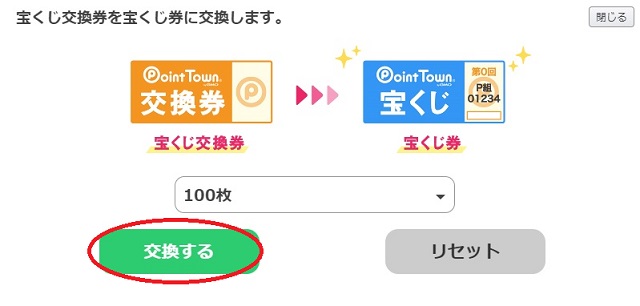 ポイントタウン宝くじのページにログインすることで毎日1枚の宝くじ交換券を手に入れることが出来ます。